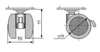Kółko meblowe 50mm typ K-49 PŁ GH gumowane skrętne