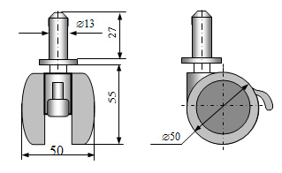 Kółko meblowe 50mm typ K-49/27 gumowane z hamulcem
