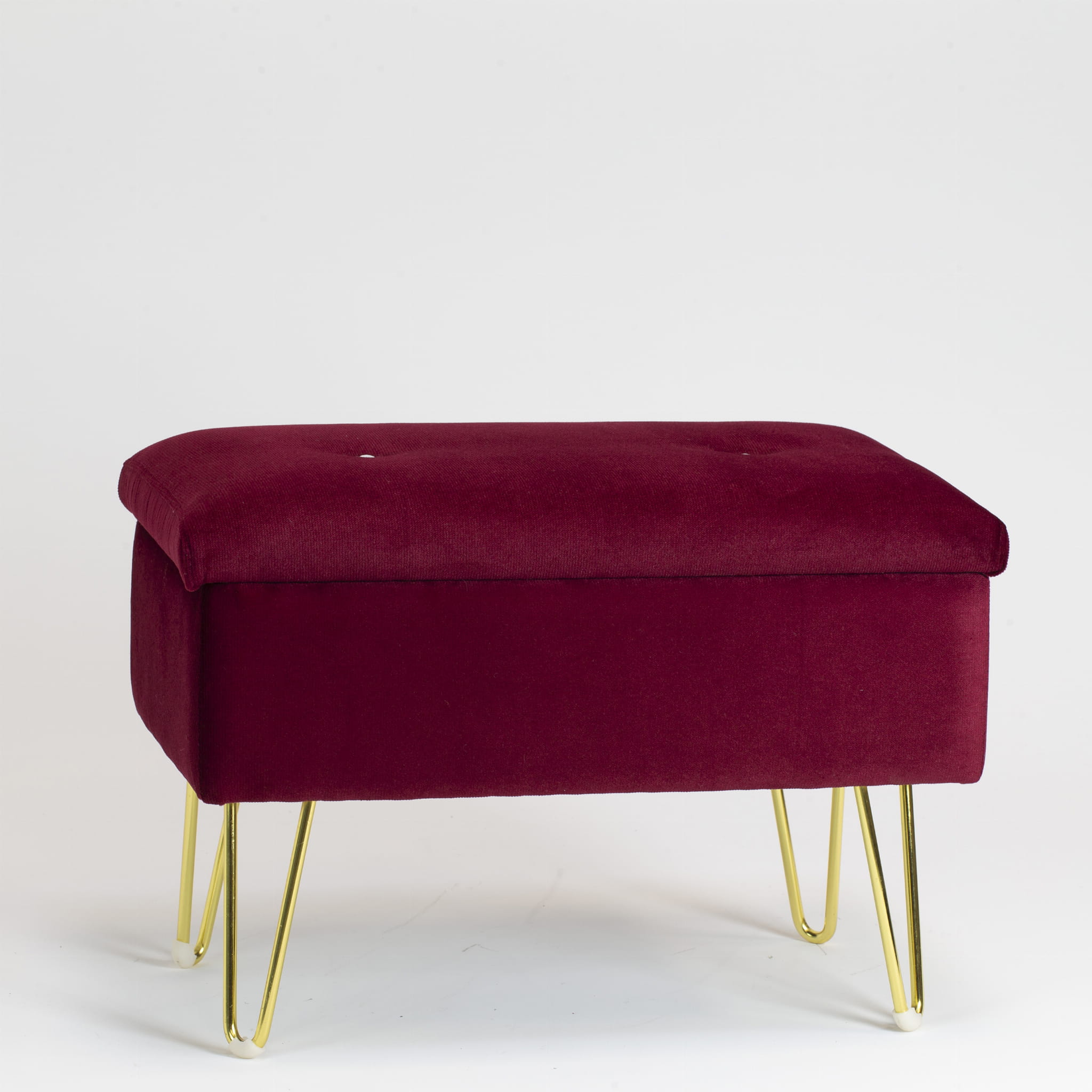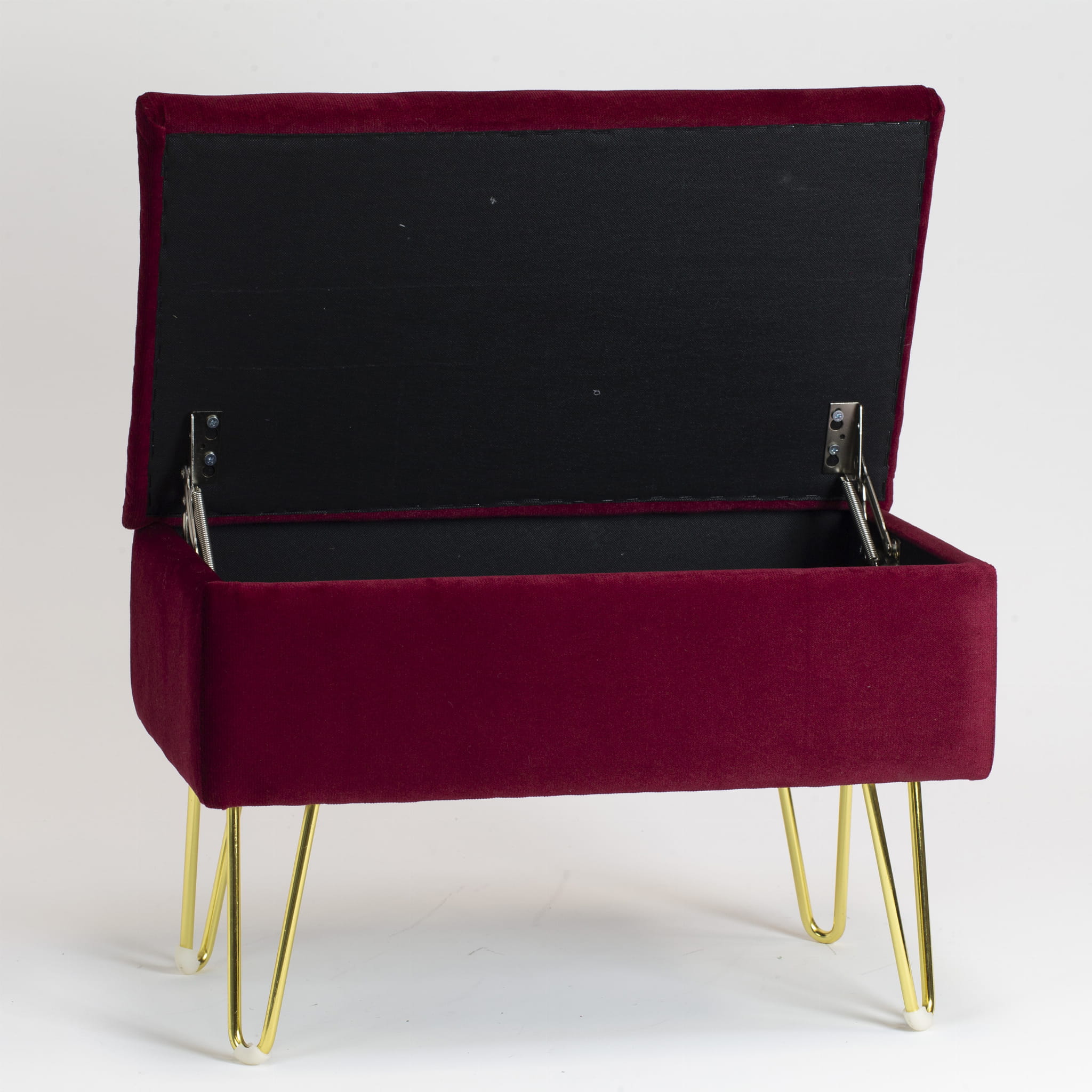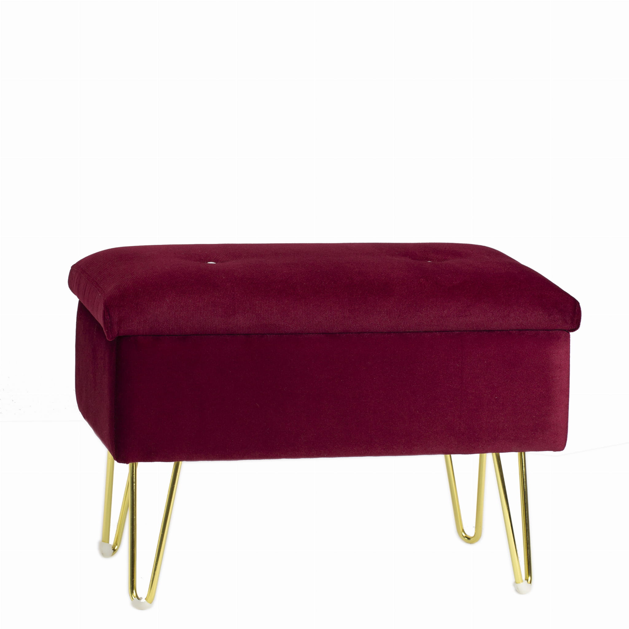 Delikatnie pikowane siedzisko zapewnia komfort użytkowania, a smukłe, złote nogi dodają lekkości i ekskluzywnego wyglądu. Dzięki otwieranemu wieku pufa MILAN oferuje praktyczną przestrzeń do przechowywania, idealną na koce, poduszki czy inne drobiazgi.