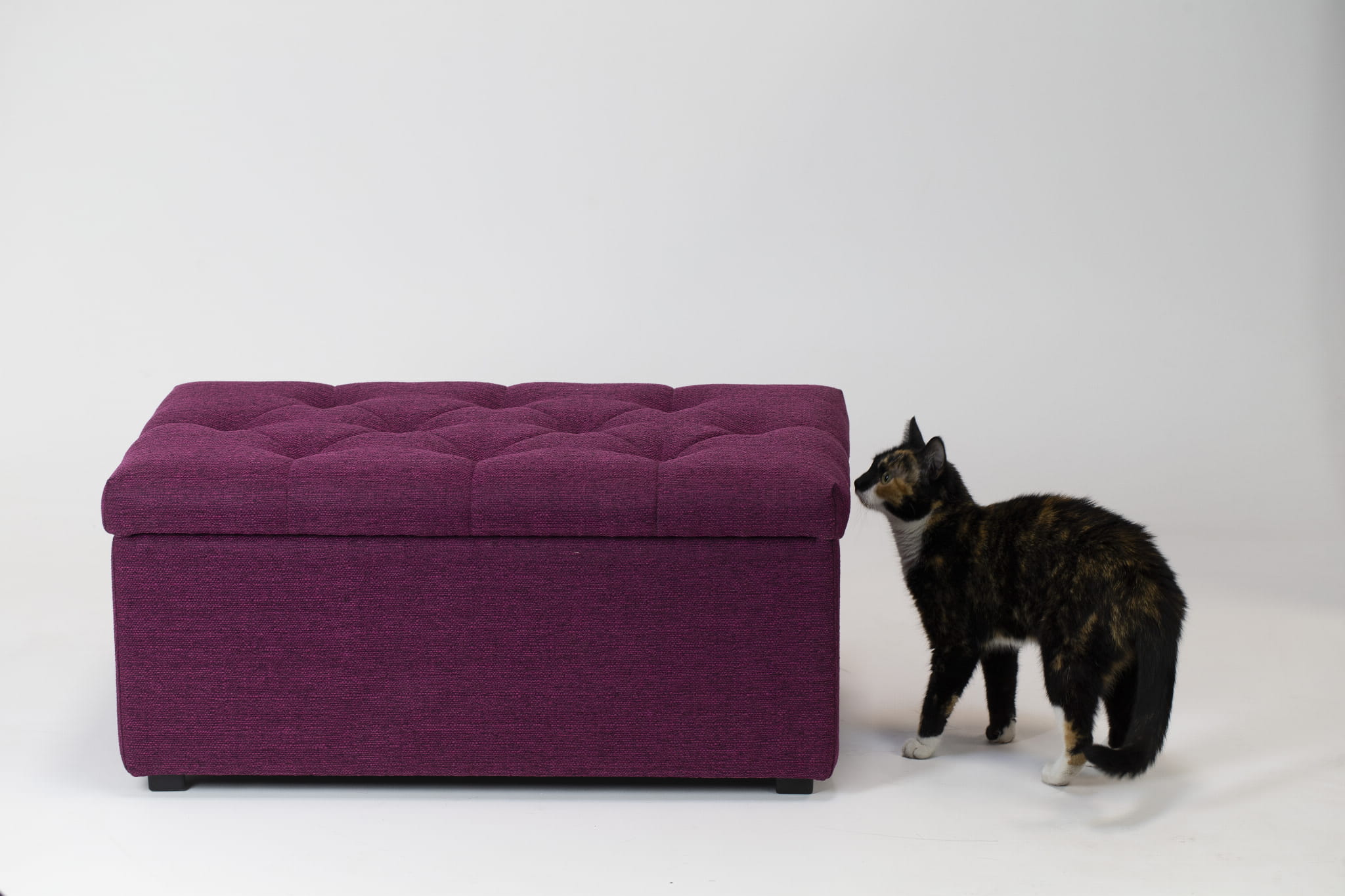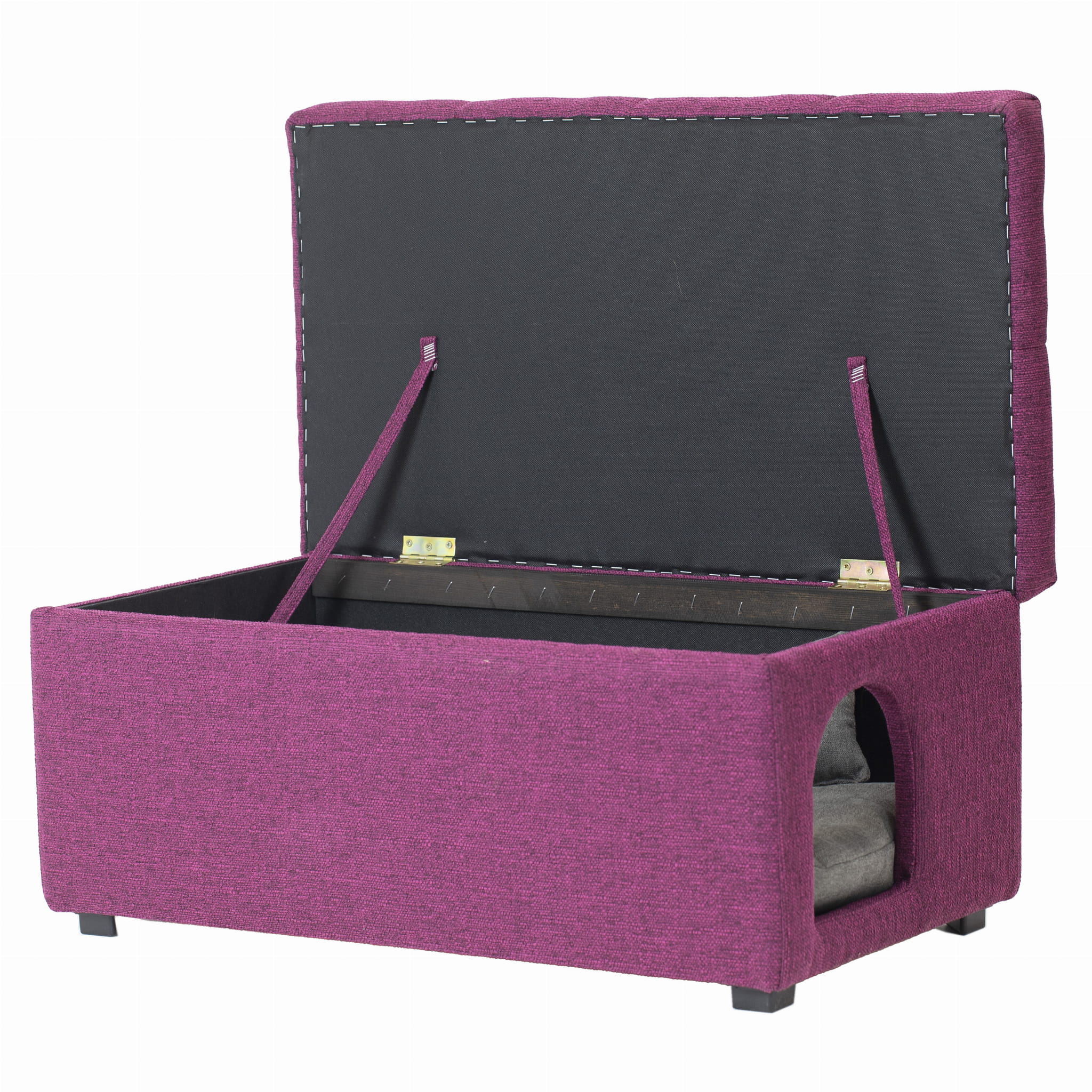- Wygoda i Styl: Pufa jest tapicerowana przyjemną w dotyku tkaniną w pięknym, purpurowym kolorze. Pikowane wieko dodaje elegancji, a solidna konstrukcja zapewnia trwałość. W środku znajduje się wyjmowana, miękka poduszka, która zapewnia maksymalny komfort Twojemu zwierzakowi.
